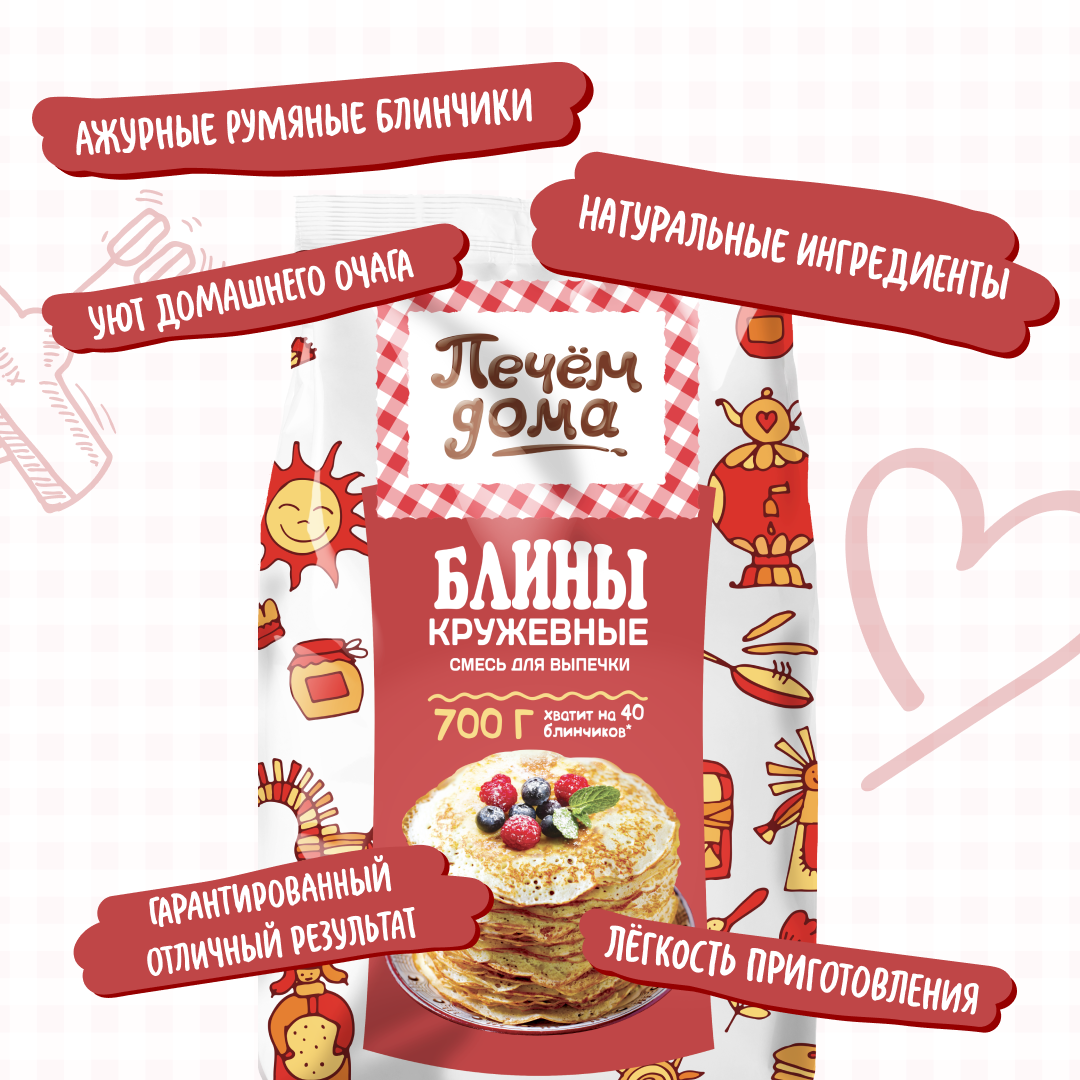 Смесь для выпечки Блины Кружевные 700 гр x 4 уп, Печем дома интересное: