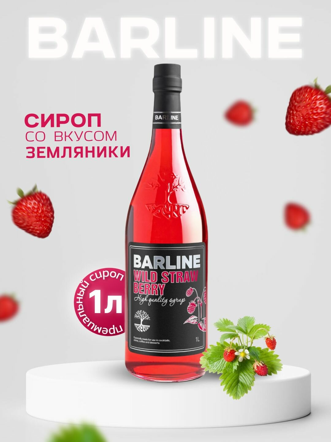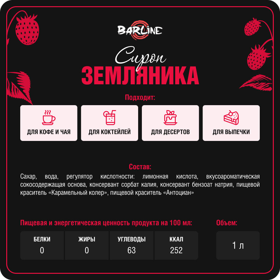 Сироп Barline Земляника (Wild Strawberry), 1 л, для кофе, чая, коктейлей и десертов, пластиковая бутылка, Барлайн