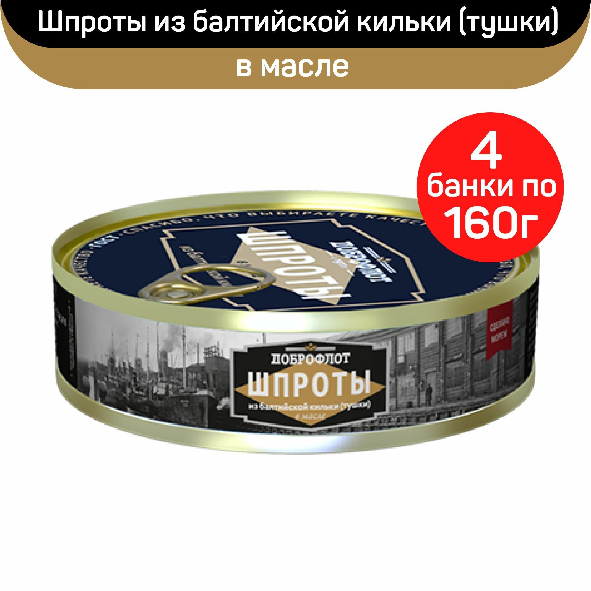 Консервы рыбные "Доброфлот" - Шпроты в масле из Балтийской кильки копчёные ГОСТ, 160 г - 4 шт