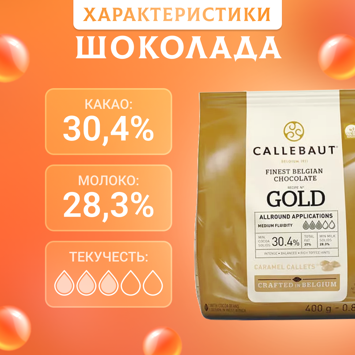 Кондитерский бельгийский шоколад Callebaut Gold со вкусом карамели 0,4 кг