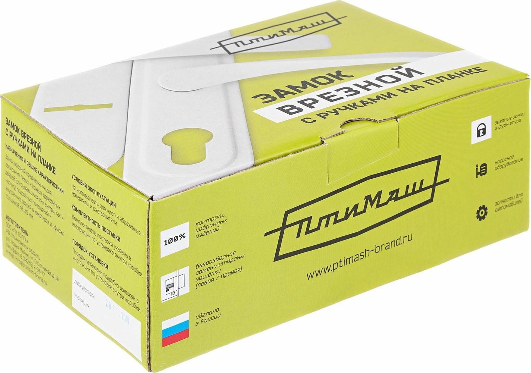 Врезной замок с ручками для деревянных дверей, расстояние 55 мм Птимаш ЗВ4-3.08 белый со стяжками