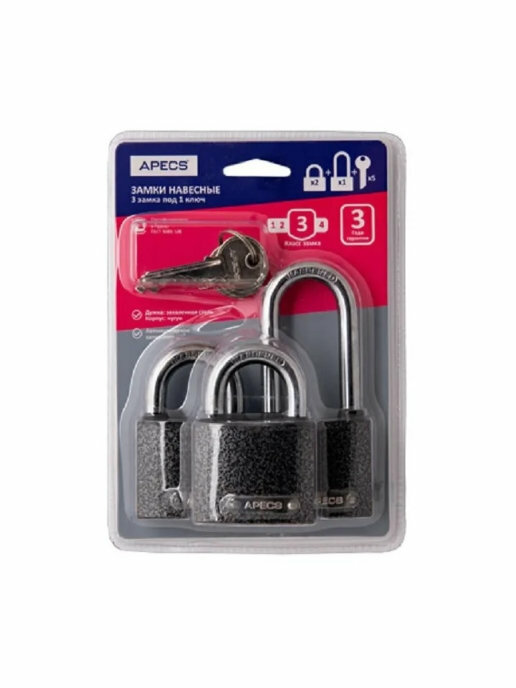 Apecs Замки навесные PD-01-50-Blister 3Locks+5Keys 28741 .