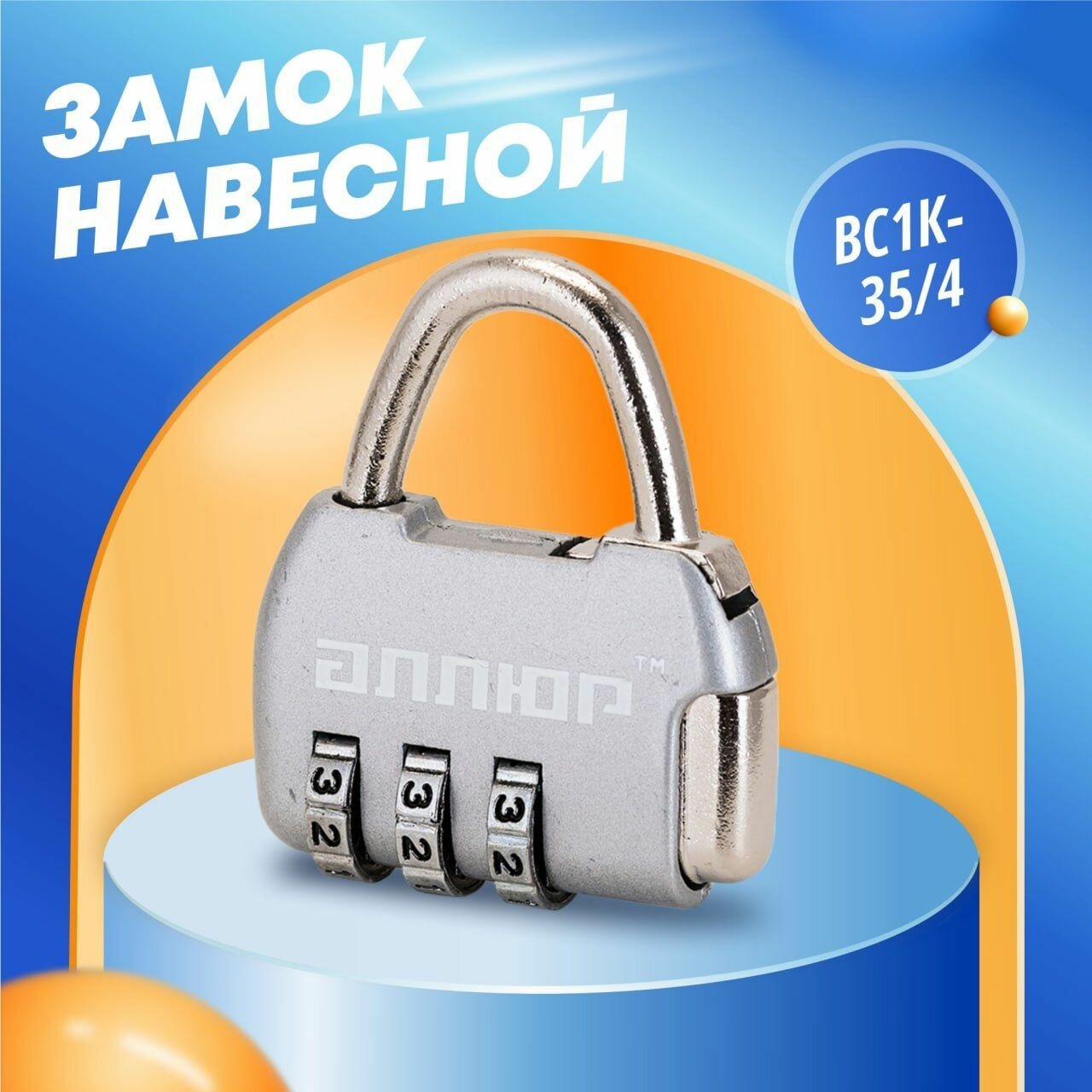 Замок навесной кодовый (багажный) , дужка 4 мм, цвет серебро, аллюр ВС1К-35/4 (HA806) CP интересное:
