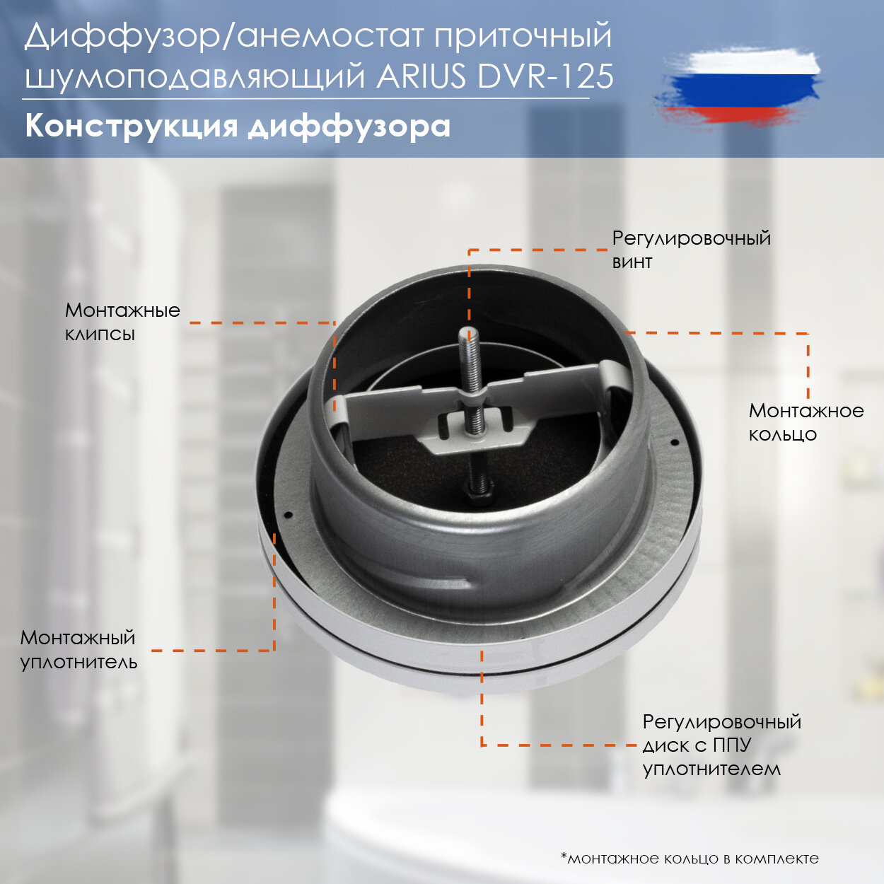 Диффузор/Анемостат Arius приточный шумоподавляющий стально Dvr-125 диаметр 125 мм, белый RAL 9016 135479