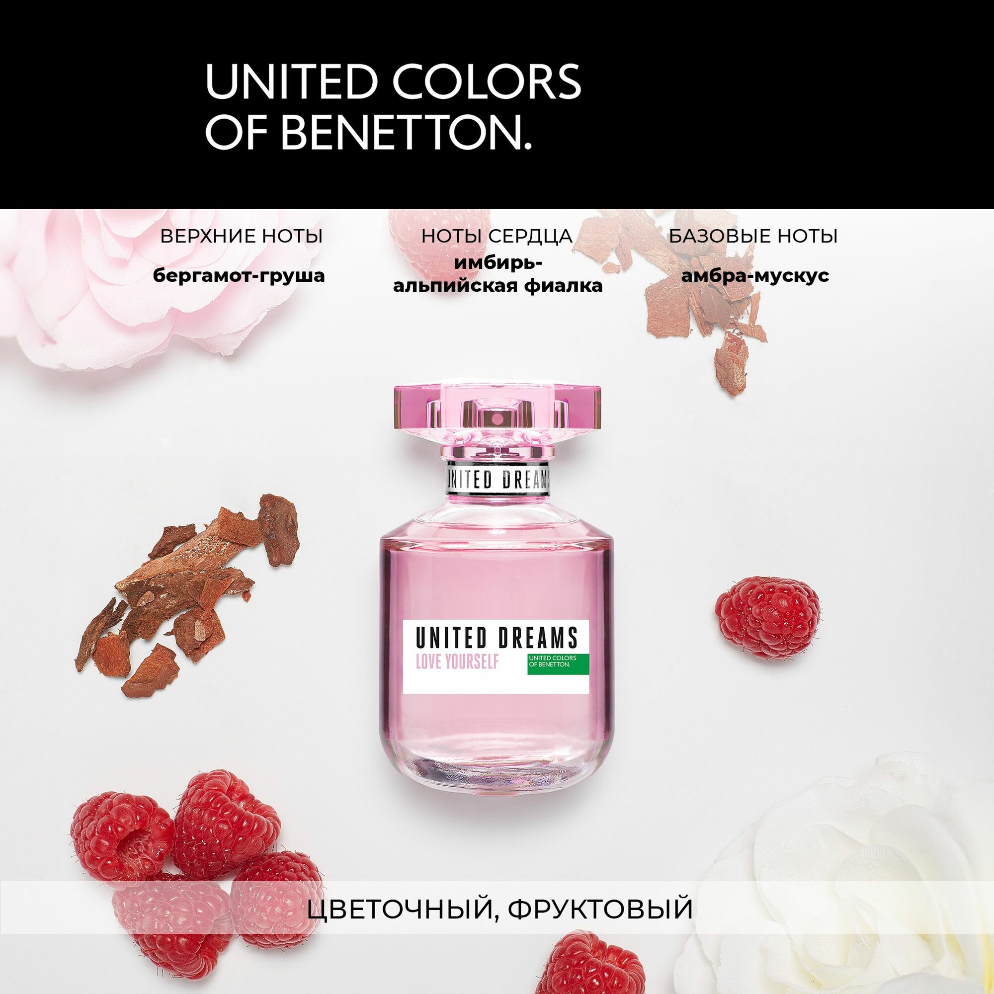 Фруктовые духи Benetton United Dreams Love Yourself / Туалетная вода 50 мл / Аромат Бенеттон Юнайтед Дримс Лав Йорселф / Парфюм для женщин