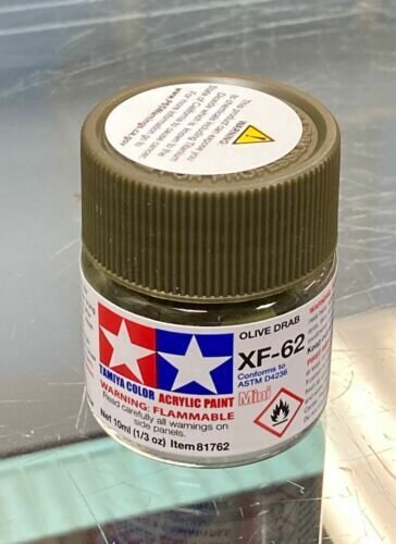 Ниже Вы можете прочитать отзывы на Краска акриловая XF-62 OLIVE DRAB FLAT, ACRYLIC PAINT MINI 10 ML. (Оливковый серо-коричневый матовый) 81762, ознакомится с подробными характеристиками, посмотреть интересные обзоры и фотографии на Краска акриловая XF-62 OLIVE DRAB FLAT, ACRYLIC PAINT MINI 10 ML. (Оливковый серо-коричневый матовый) 81762.