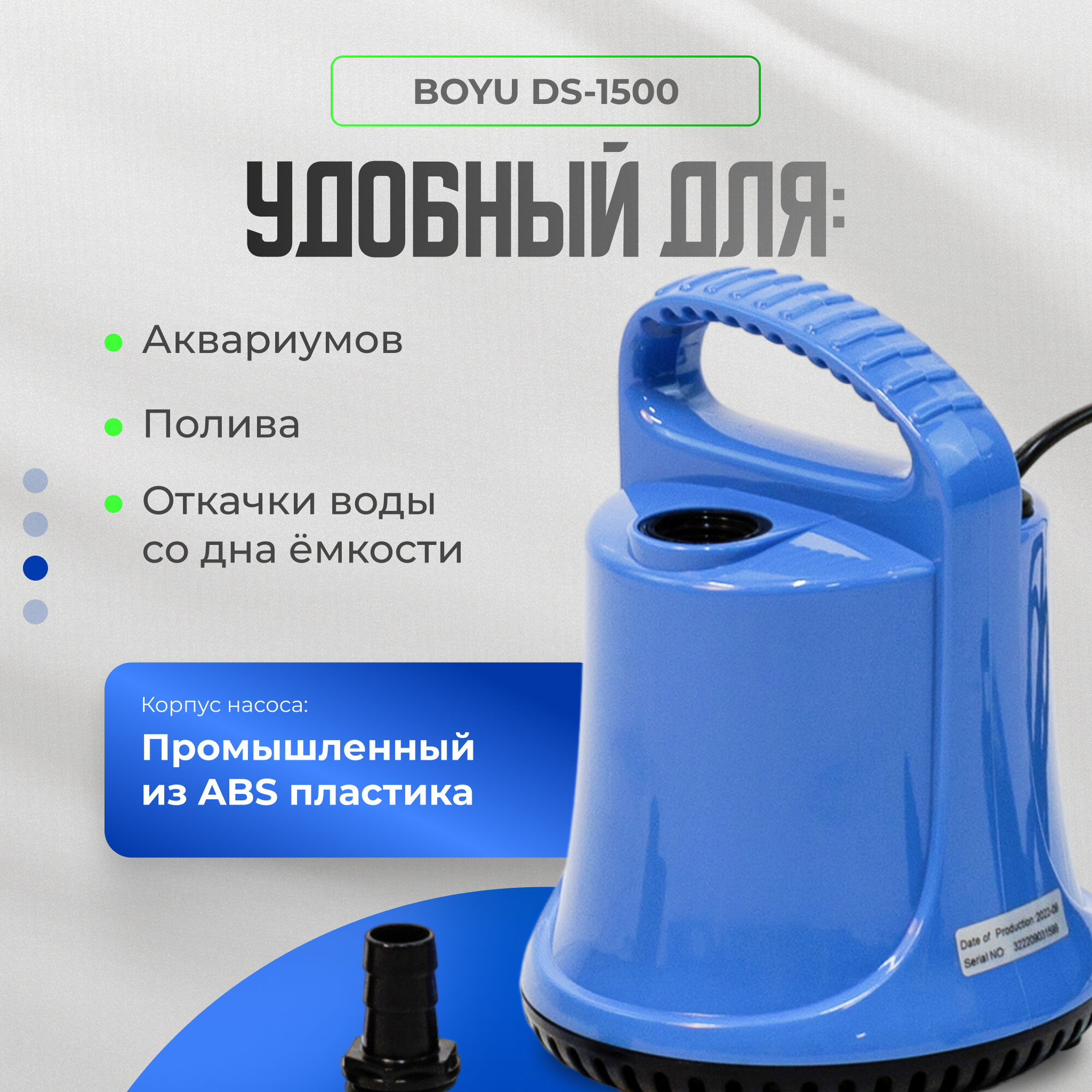 Помпа подъемная для аквариумов BOYU DS-1500. Насос для воды. Помпа погружная. интересное: