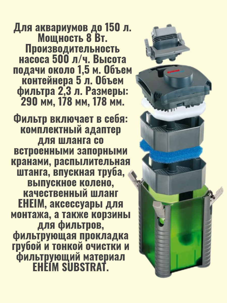 Внешний фильтр Eheim Experience 150 2422 500 л/ч для аквариумов объемом до 150 л (1 шт) интересное: