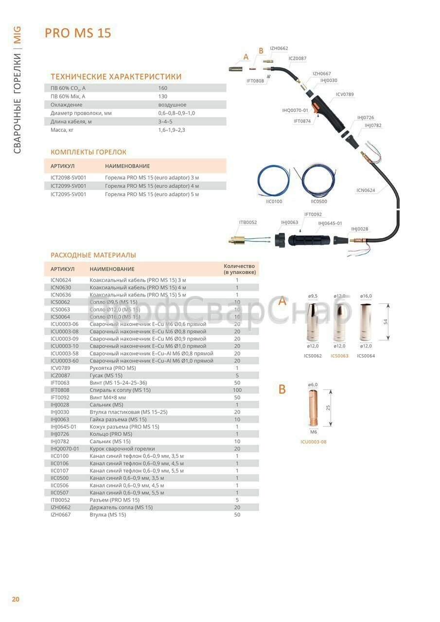 | Подробная комплектация | сварочная горелка MS 15, евро адаптер, коаксиальный кабель, рукоятка в сборе, гусак, сопло, сварочный наконечник, канал направляющий, спираль |