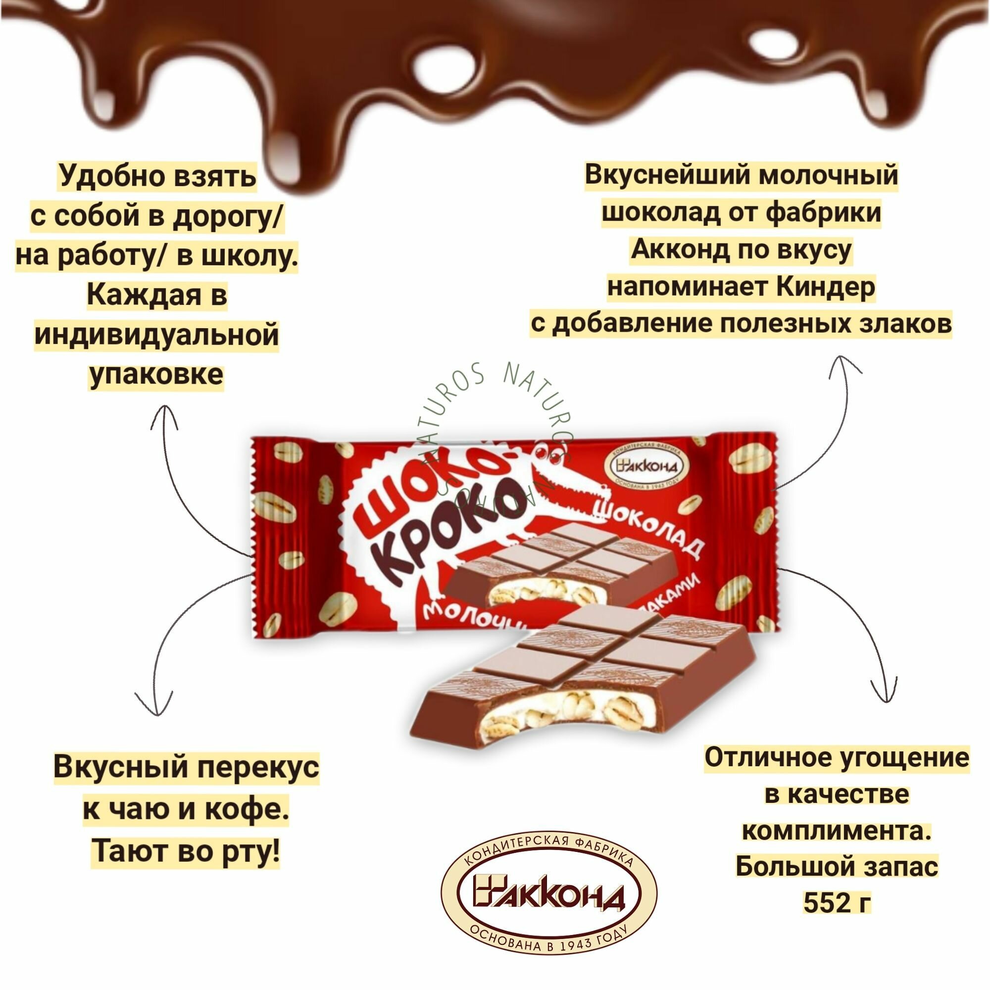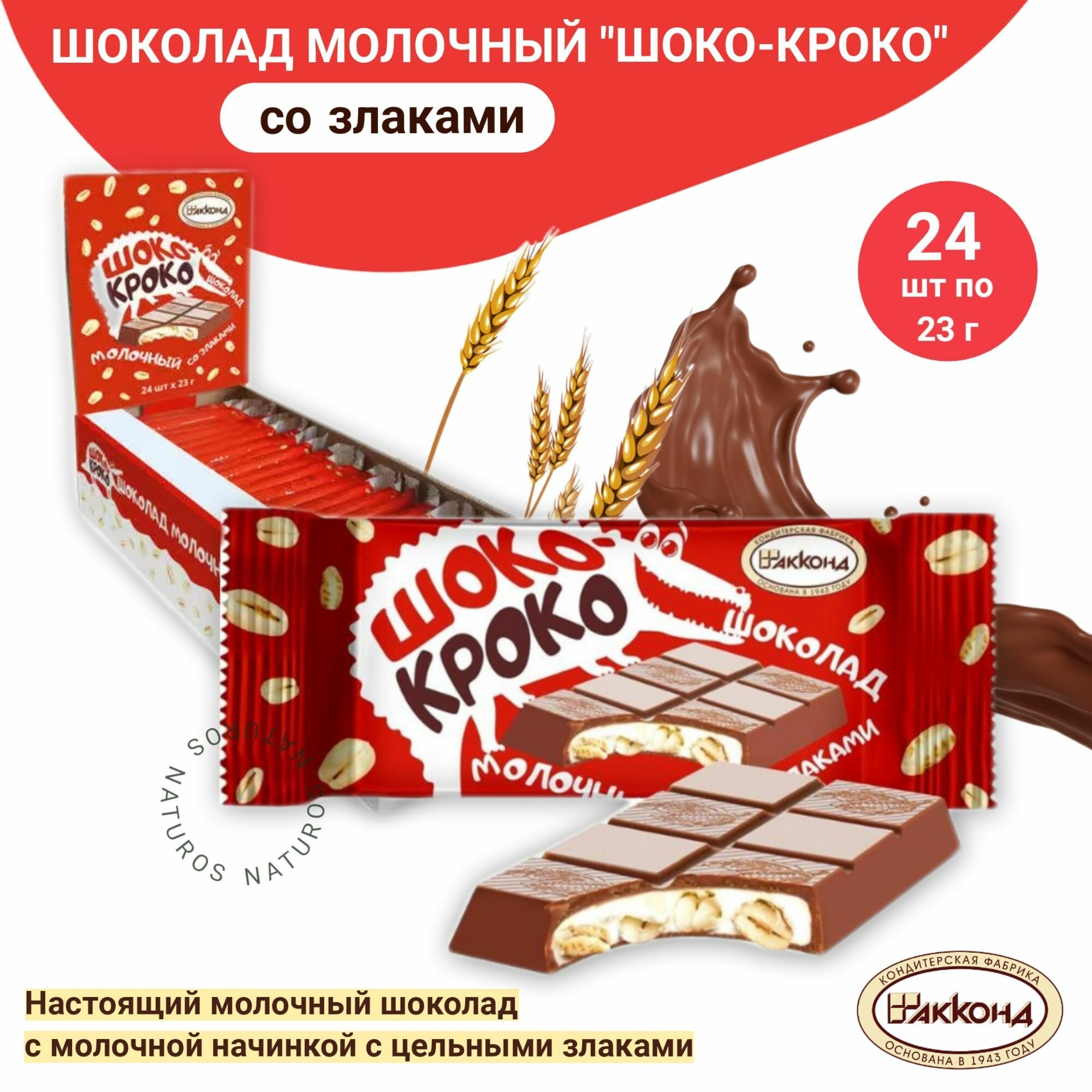 Акконд / Шоколад молочный "Шоко-кроко" со злаками (24 штуки) 23 гр./Вкус, знакомый с детства
