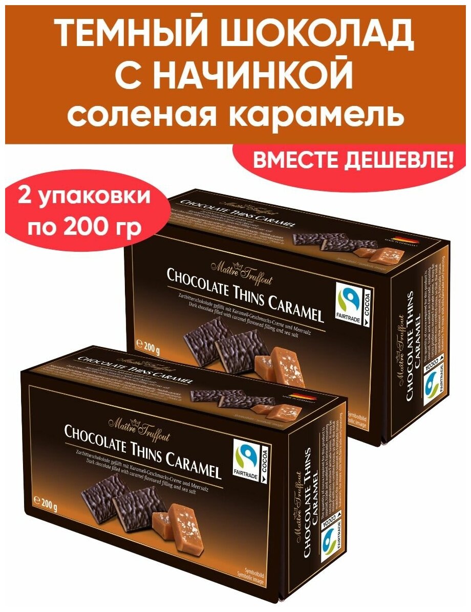 Купить Темный шоколад со вкусом карамели и морской соли в пластинках Maitre Truffout (Германия) 200 гр. х 2 шт.