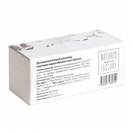 Набор гречишного белого шоколада по 5 г Nature's own Factory, 52 шт интересное: