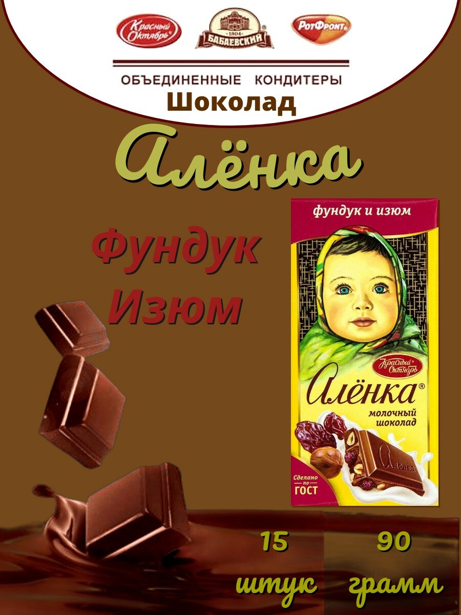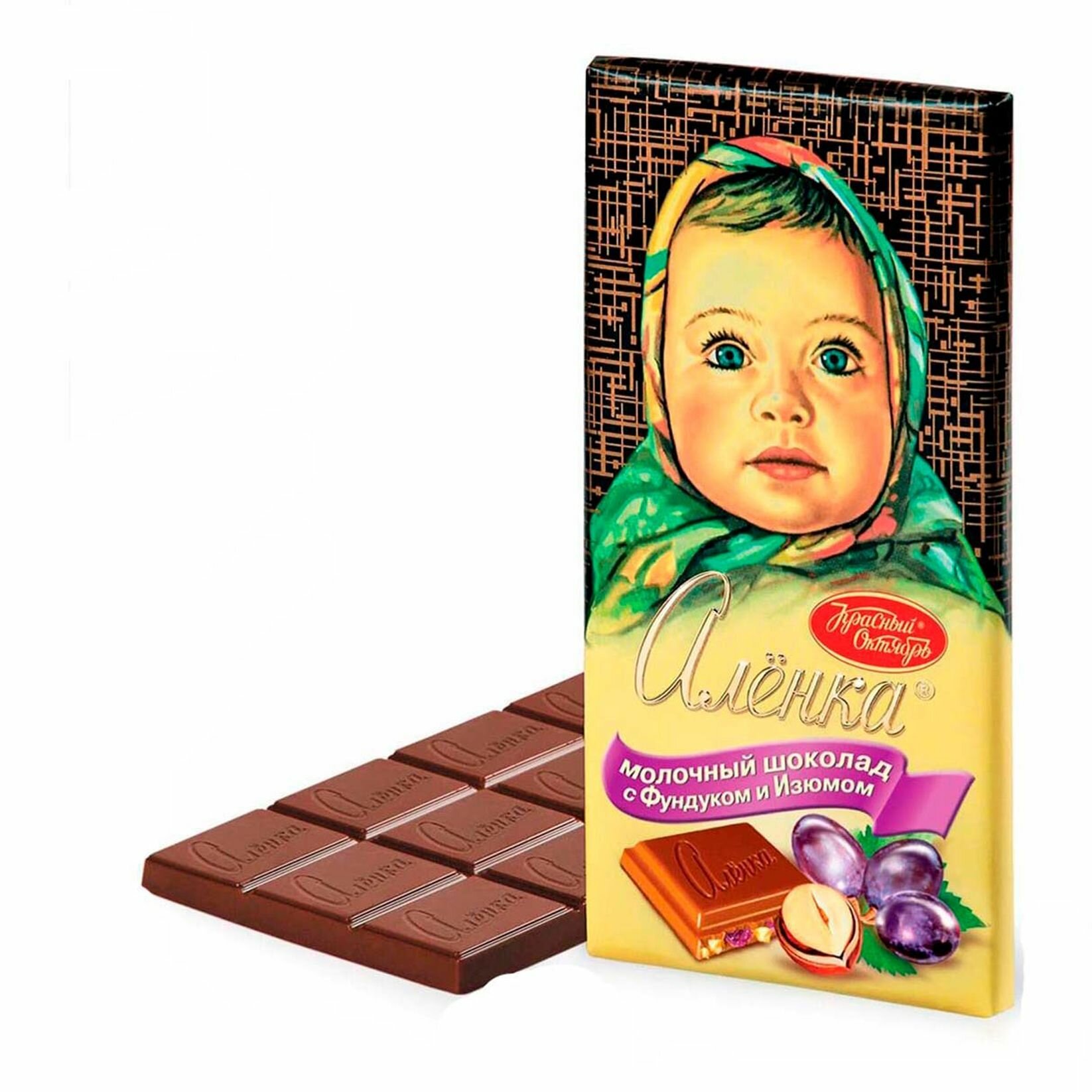 Шоколад молочный аленка с фундуком и изюмом, 90г интересное: