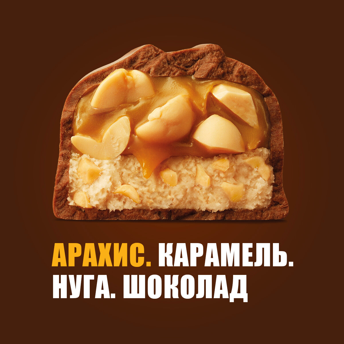 | Состав | Молочный шоколад (сахар, какао масло, какао тертое, сухое цельное молоко (w) или сухое обезжиренное молоко (r), лактоза, молочный жир, эмульгатор (соевый лецитин), ароматизатор (ванилин)); глюкозный сироп (кукурузный, пшеничный), арахис, сахар, масло пальмовое рафинированное дезодорированное, сухое обезжиренное молоко, соль, сухой яичный белок, ароматизатор (ванилин). |