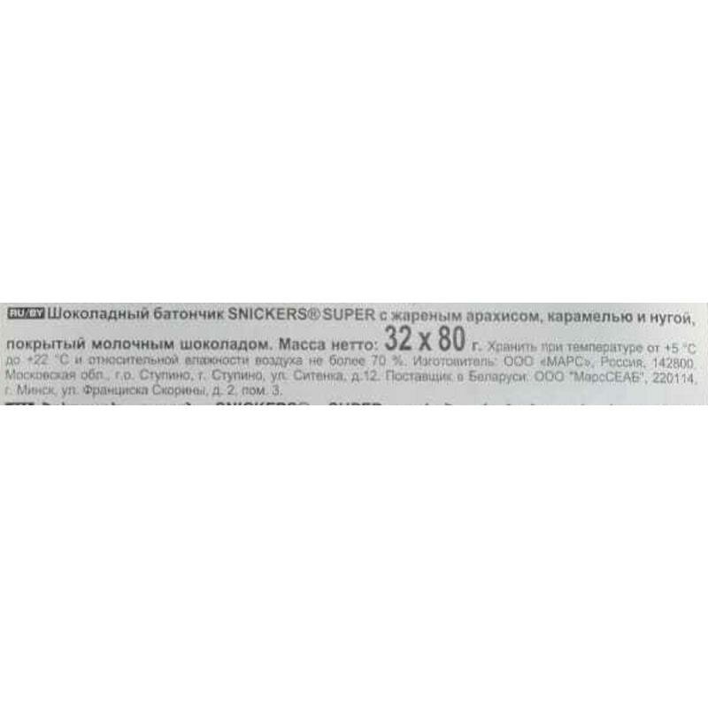 Шоколадный батончик Snickers Super, 80г