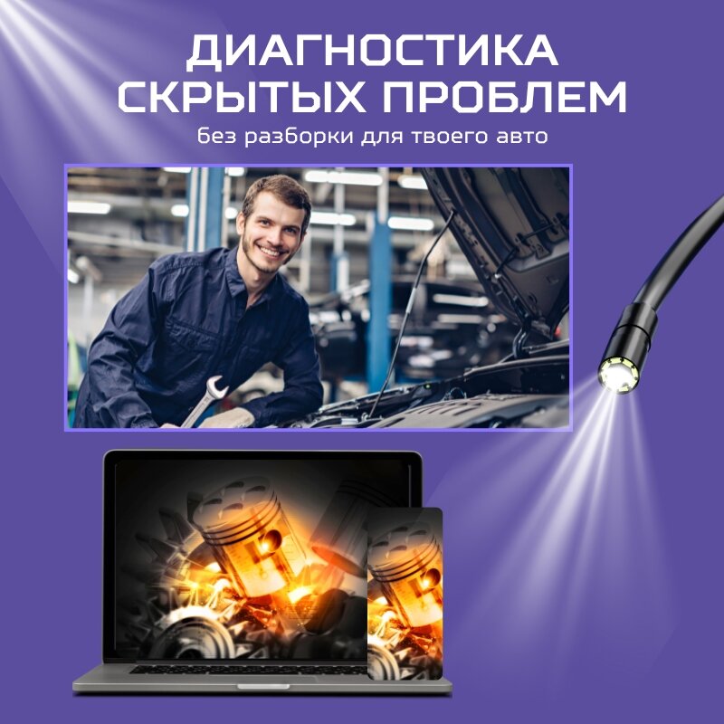 Эндоскоп для смартфона Android и компьютера, Видеоэндоскоп гибким проводом и камерой для труднодоступных мест 2 м