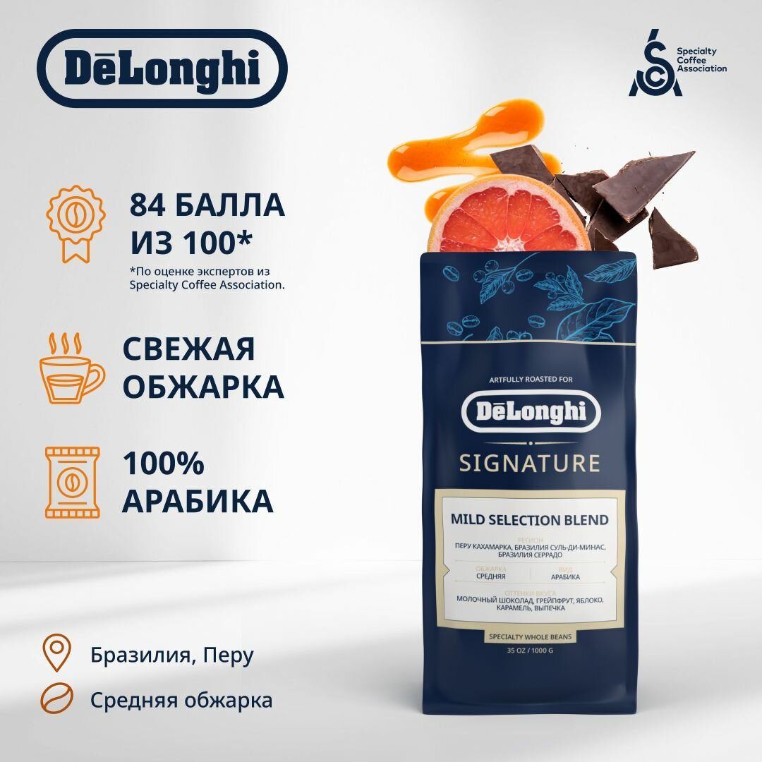 Купить Кофе в зернах DeLonghi Signature coffee Mild Selection Blend, 1 кг, средняя обжарка, 100% Арабика