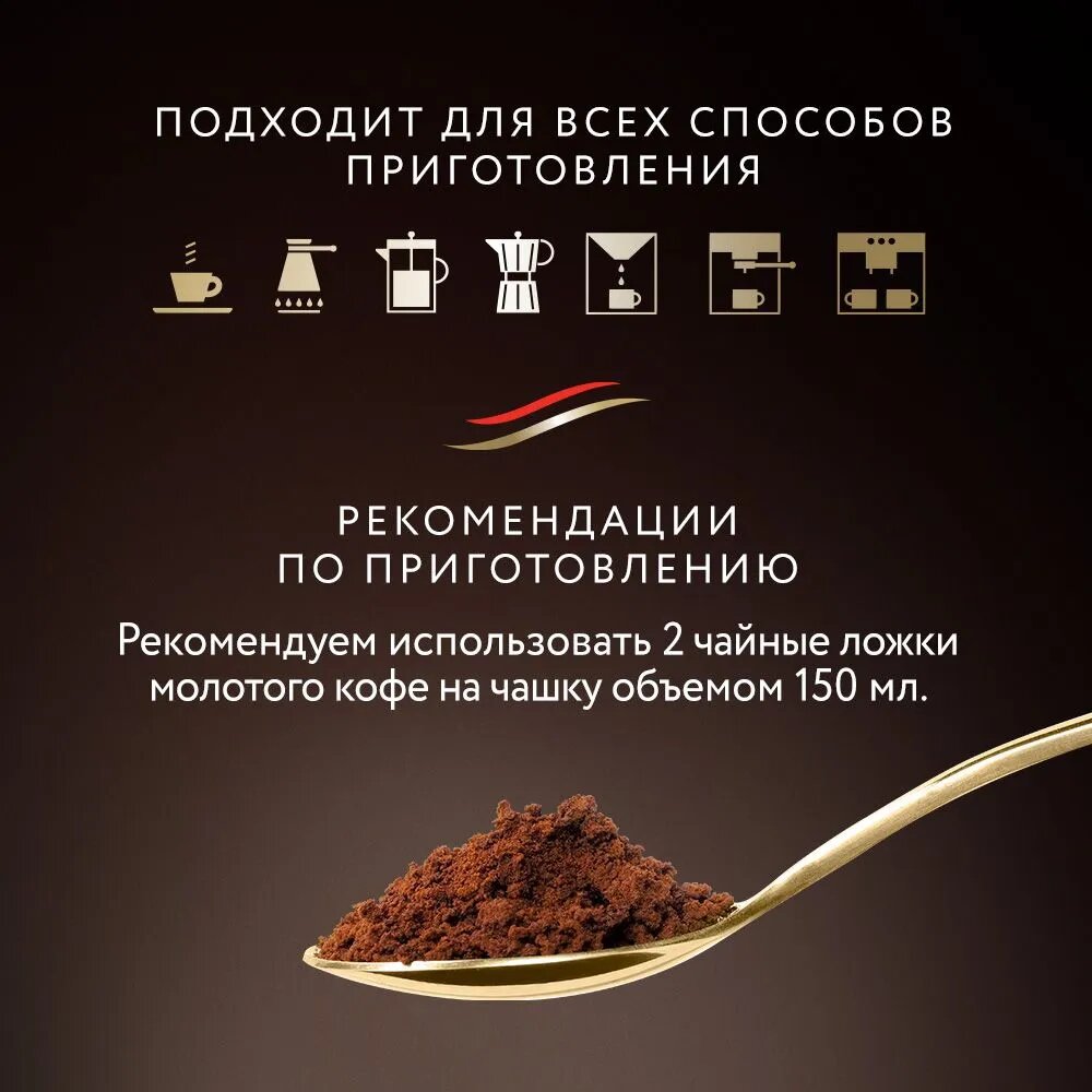 | Дополнительная информация | рекомендуется использовать 2-3 ложки молотого кофе на чашку объемом 150мл |