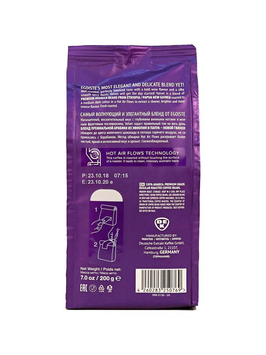 EGOISTE Кофе в зернах Velvet, 200 г, 2 уп
