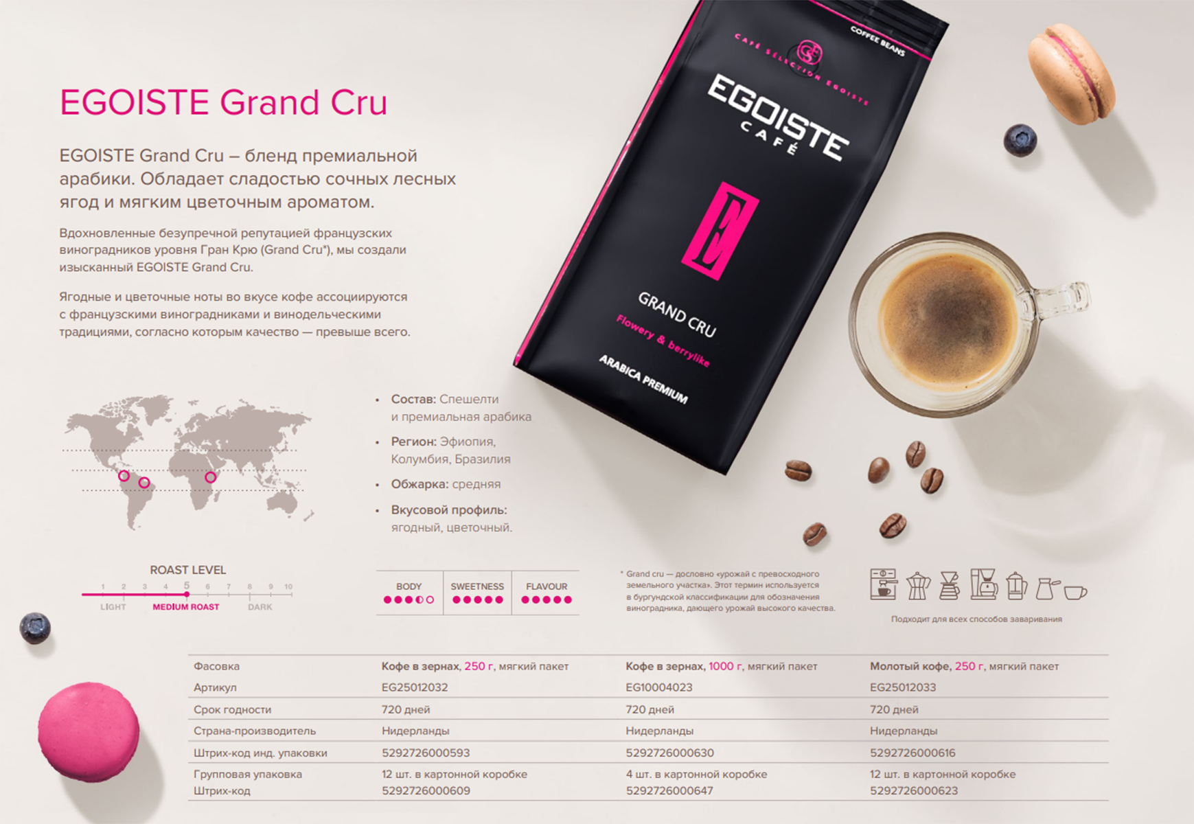 СохранитьКофе в зернах натуральный, жареный EGOISTE GRAND CRU Арабика 100% (Нидерланды) 250 гр. интересное: