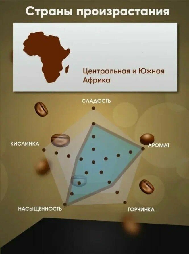 | Страна произрастания | Бразилия / Венесуэла / Вьетнам / Гватемала / Греция / Доминиканская Республика / Индонезия / Италия / Кения / Кипр / Колумбия / Коста-Рика / Куба / Мексика / Филиппины / Шри-Ланка / Эквадор / Эфиопия / ЮАР |