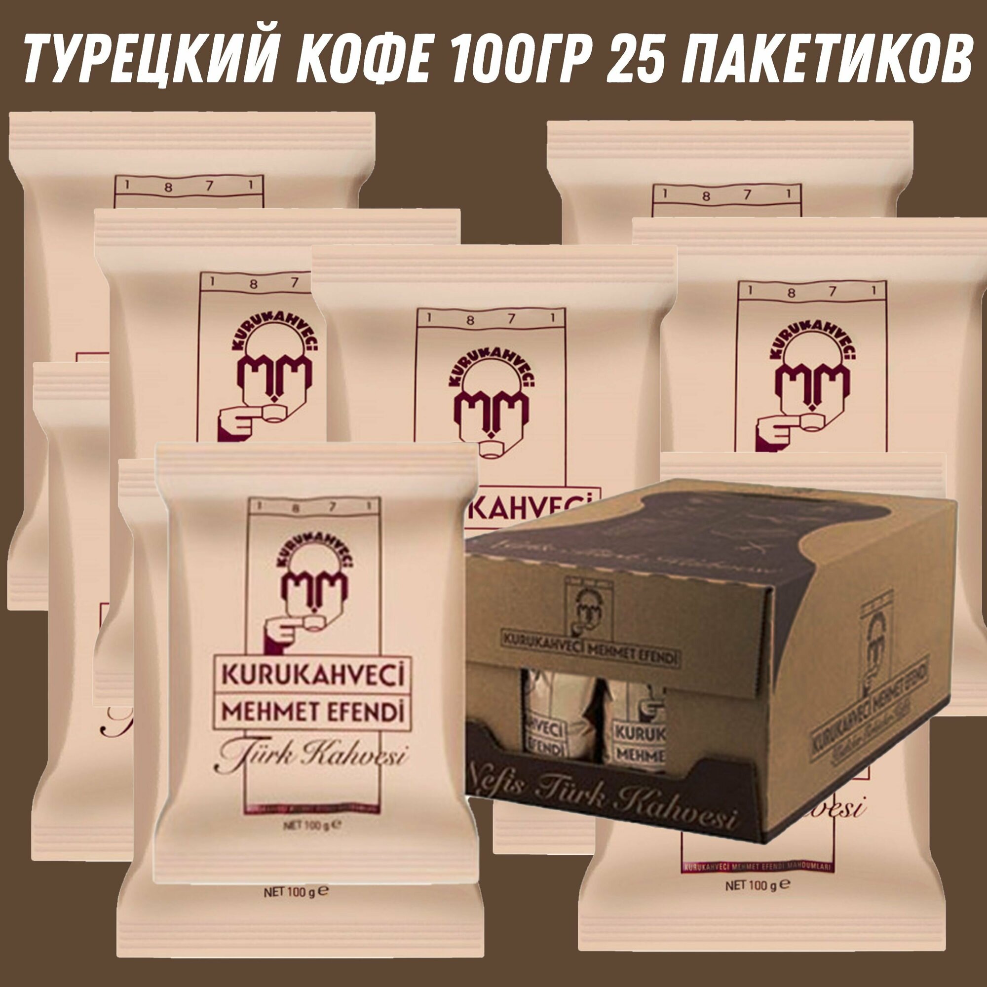 Кофе молотый Kurukahveçi Mehmet Efendı, 25 упаковок по 100 грамм, арабика 100%