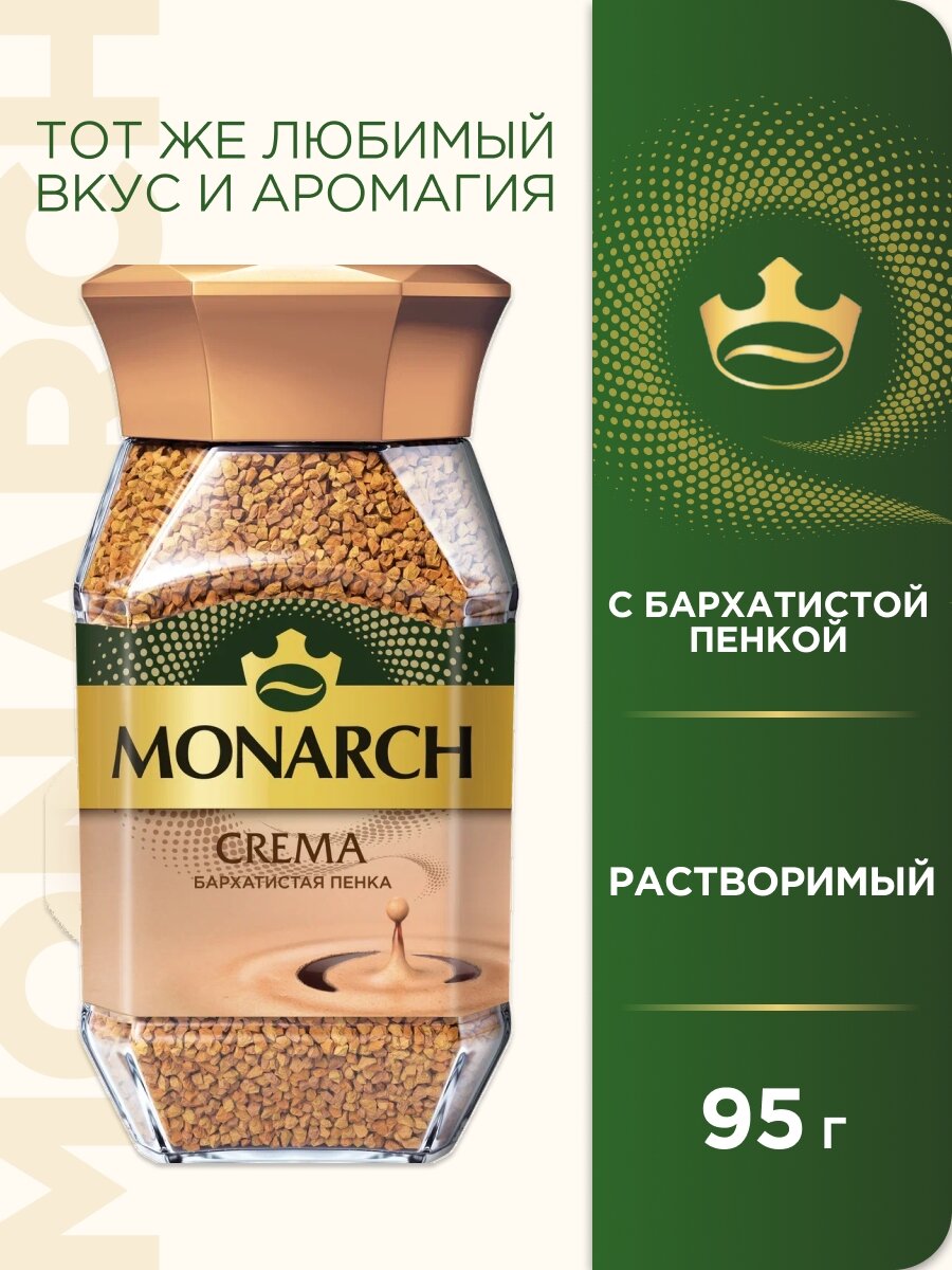 Кофе растворимый Monarch Crema с пенкой, стеклянная банка, 95 г