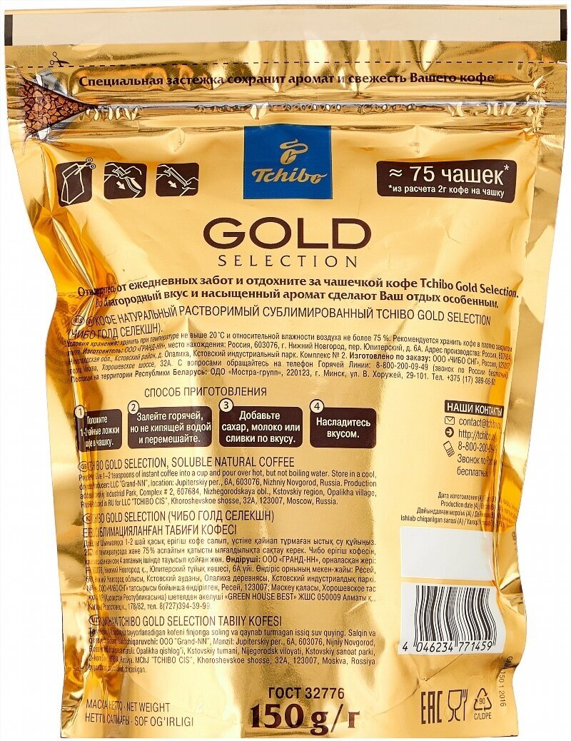 Кофе растворимый Tchibo Gold Selection, пакет, 75 г