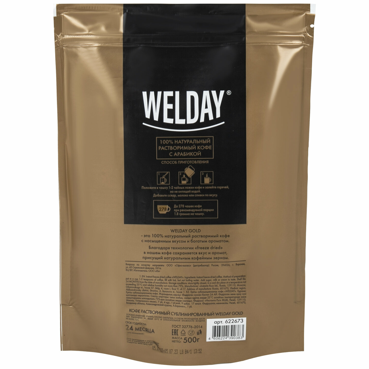 Кофе растворимый сублимированный арабика, Welday (вэлдэй) GOLD, 500 г, Бразилия, в упаковке Zip-Lock, 622673 интересное: