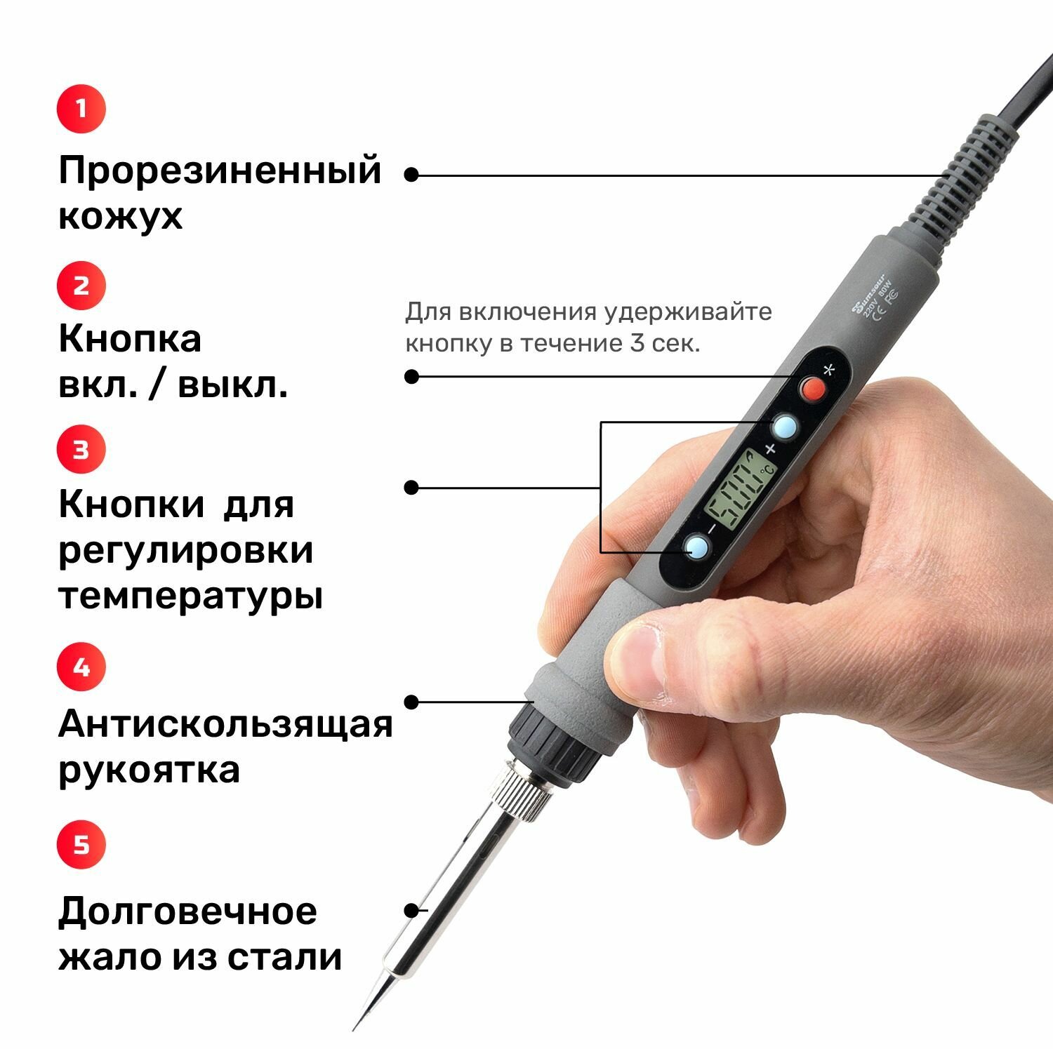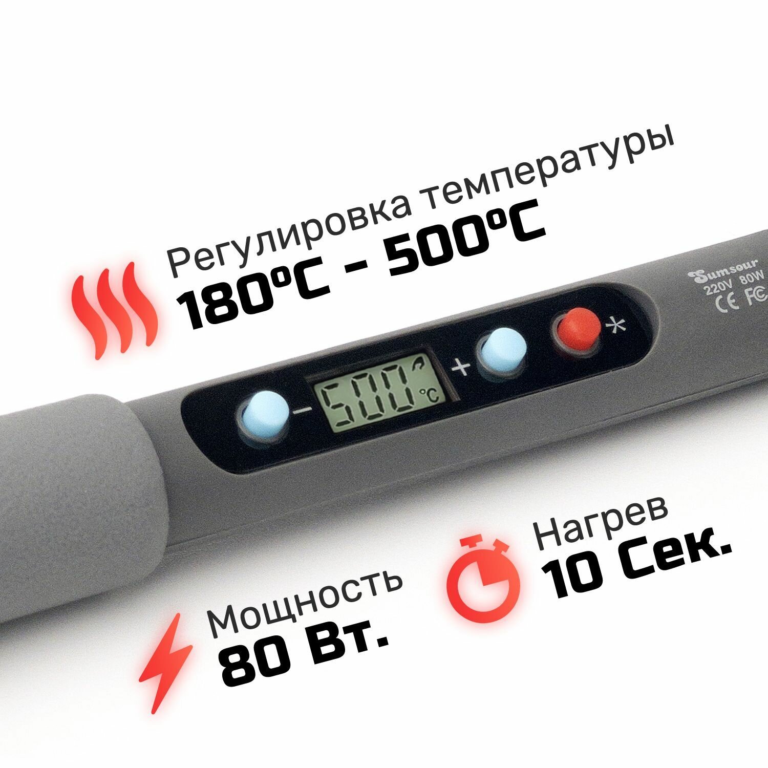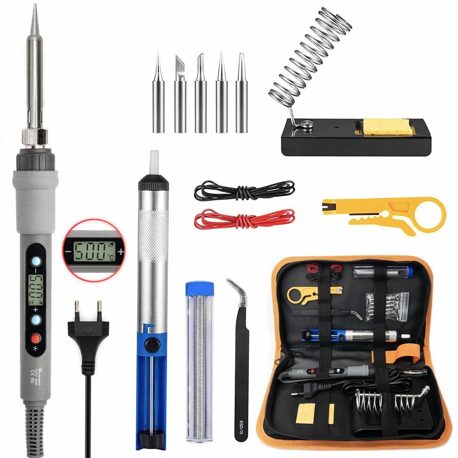 Паяльник 80 Вт с регулировкой температуры и ЖК-дисплеем Sumsour, 9 предметов