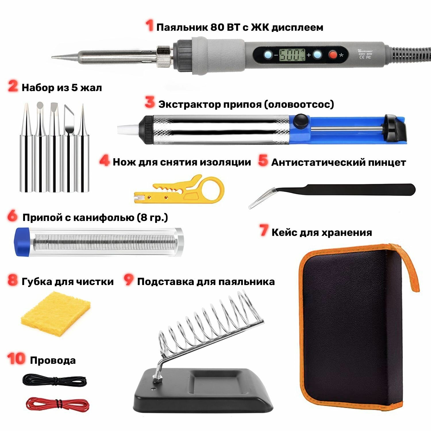 Паяльник 80 Вт с регулировкой температуры и ЖК-дисплеем, 10 предметов