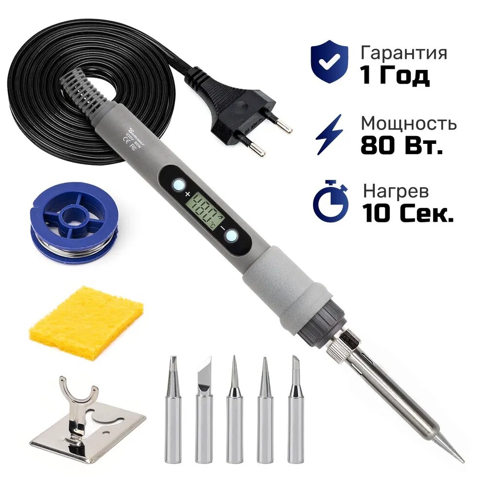 Паяльник 80 Вт с регулировкой температуры и ЖК-дисплеем Sumsour, 9 предметов