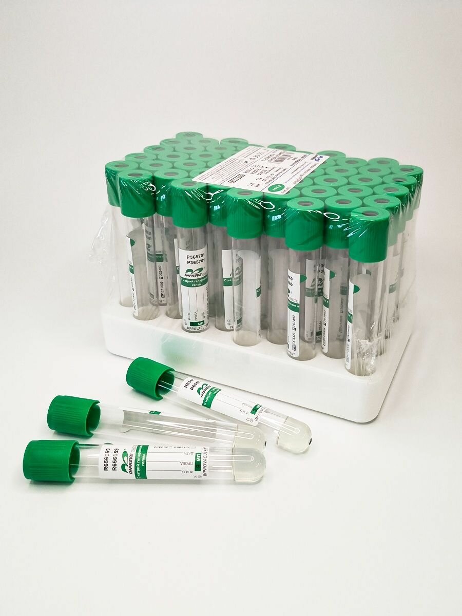 Пробирки вакуумные с натрий-гепарином и гелем 9 мл Improvacuter ( 50 шт. )