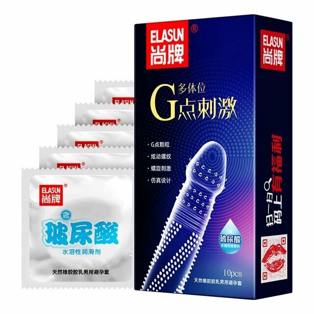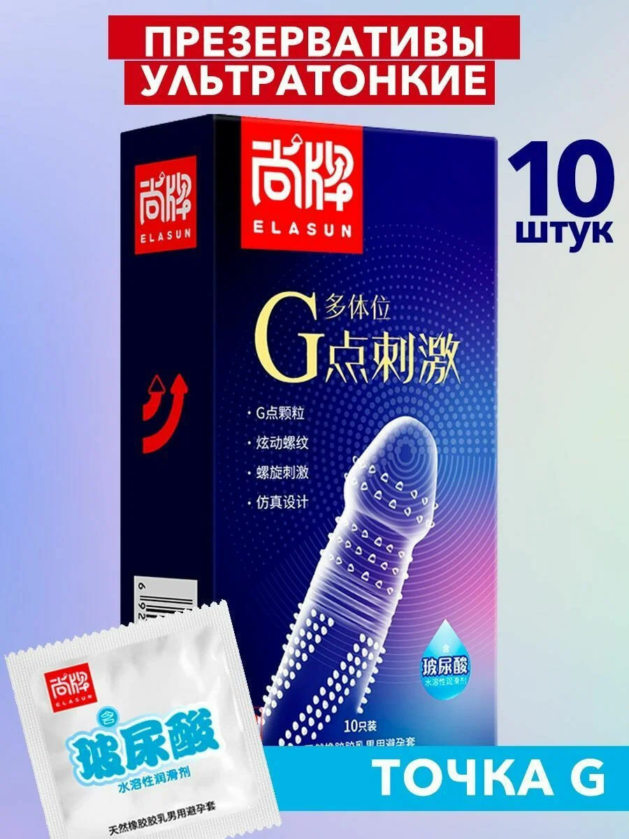 Презервативы ELASUN, ультратонкие, с усиками, ребристые, с шипами стимулирующие точку G, со смазкой, 10 шт.