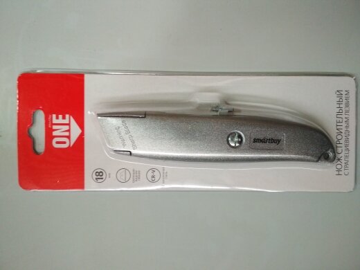 Нож строительный SmartBuy SBT-KNT-18P1 (18 мм, трапециевидное лезвие, алюминиевый корпус)