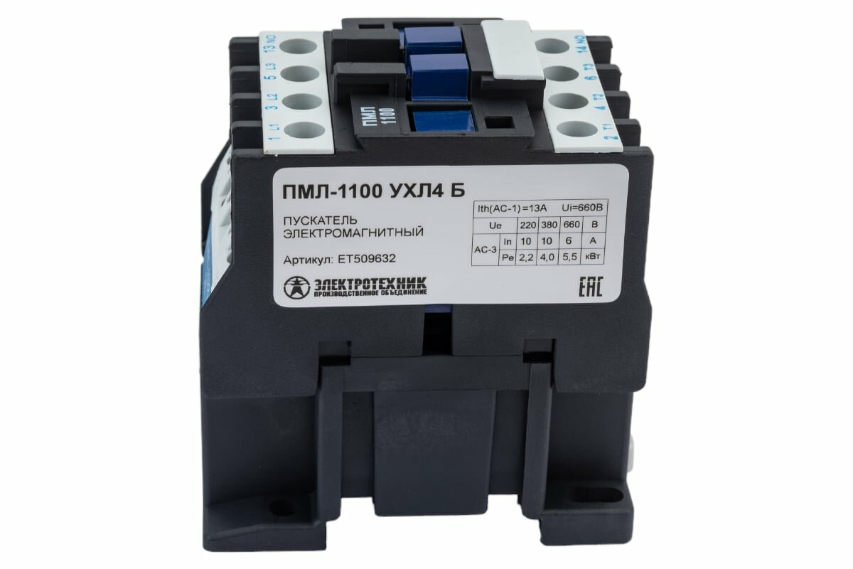 Пускатель электромагнитный ПМЛ-1100 УХЛ4 Б, 220В/50Гц, 1з, 10А, нереверсивный, без реле, IP00 (ЭТ), ET509632, ПО Электротехник