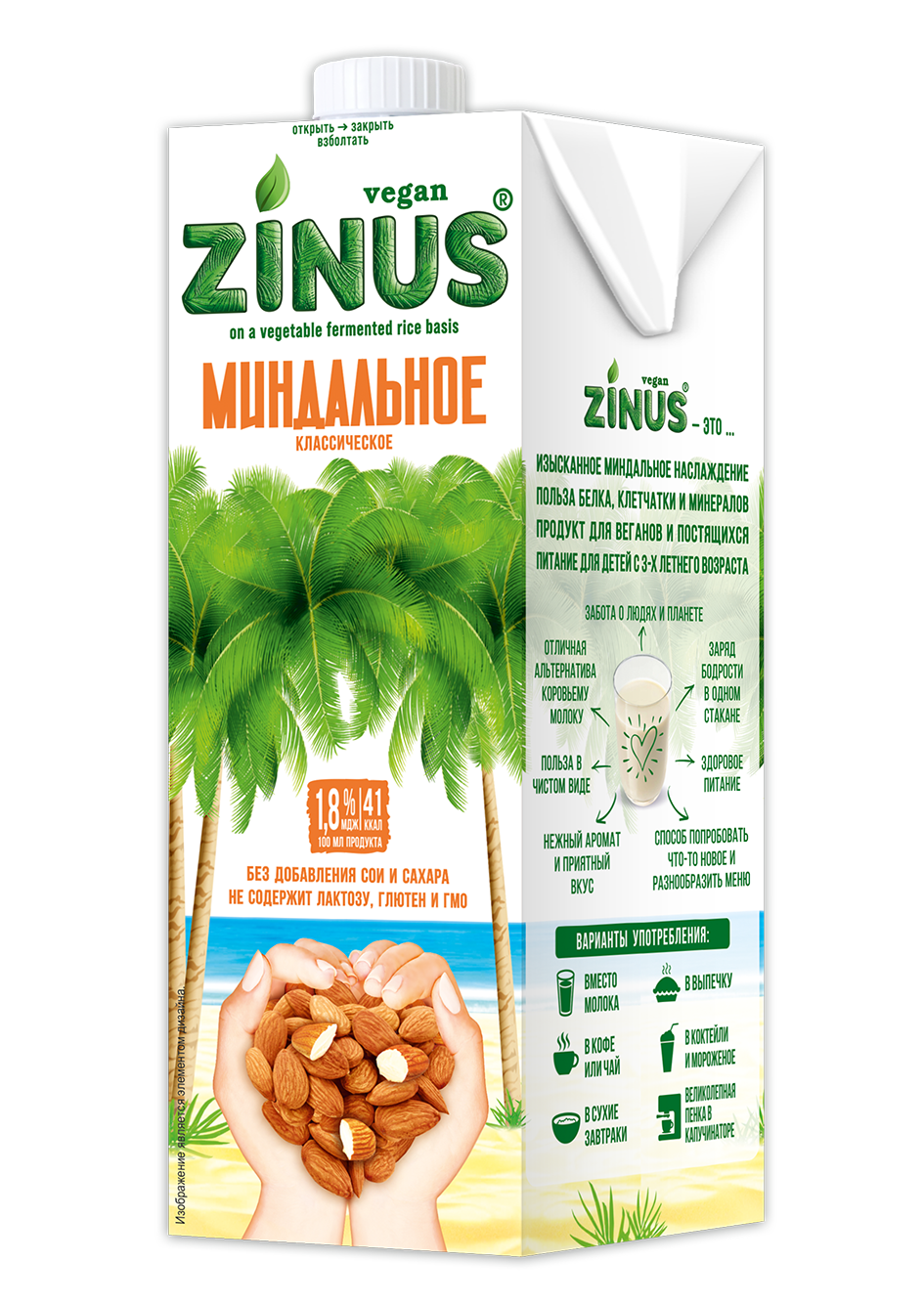 Молоко миндальное от бренда "ZINUS", растительный напиток, 1 л