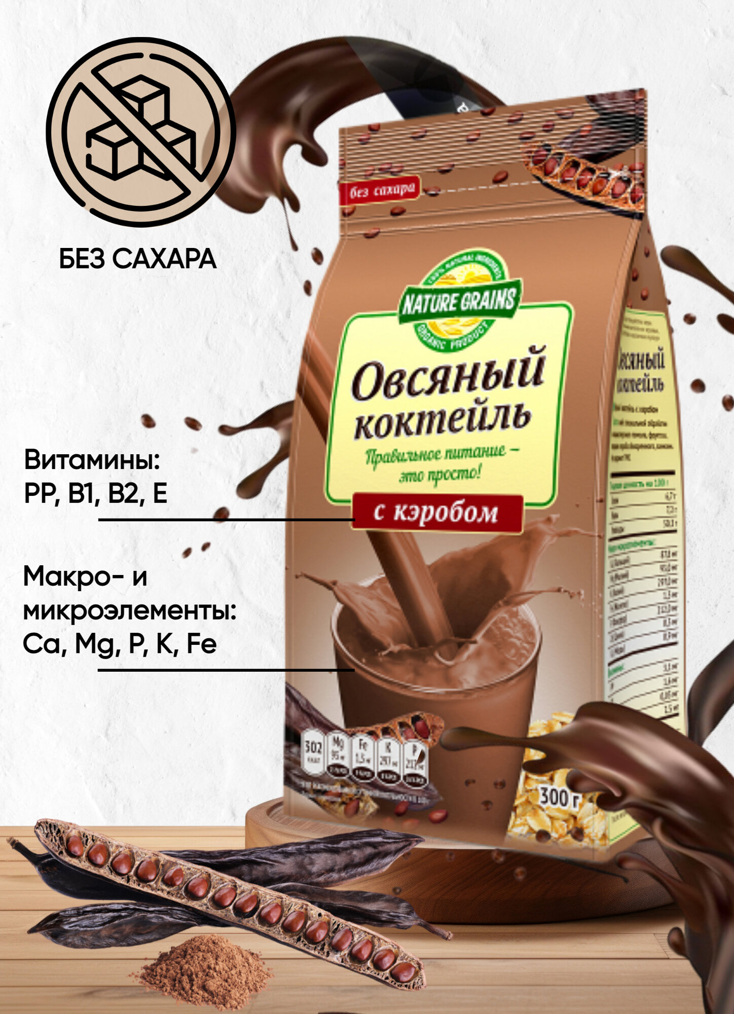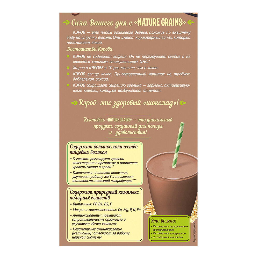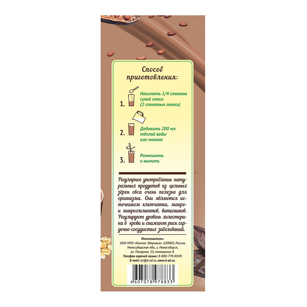 Коктейль овсяный с кэробом без сахара, 300 г, Компас здоровья интересное: