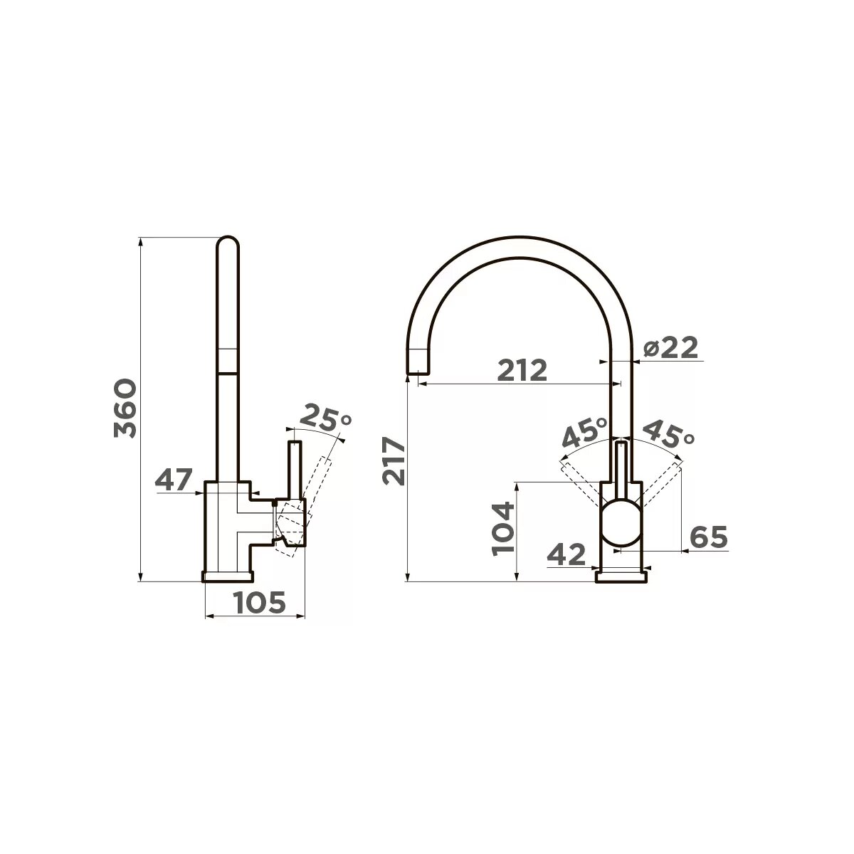 | Длина излива | 212 мм |