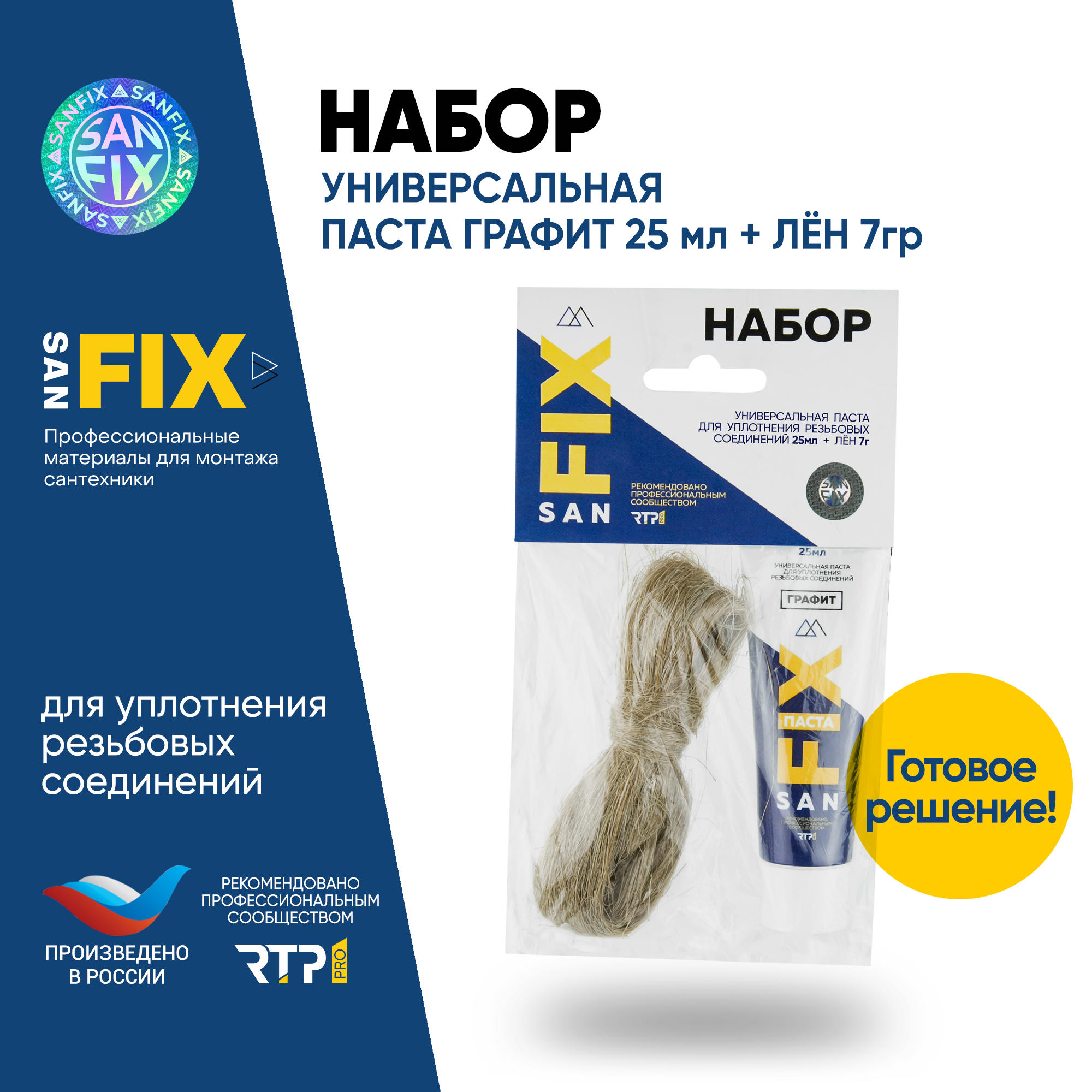 Набор монтажный: универсальная паста для уплотнения резьбовых соединений + лен (25 мл. + 7 гр.), в тубе, графит, SANFIX