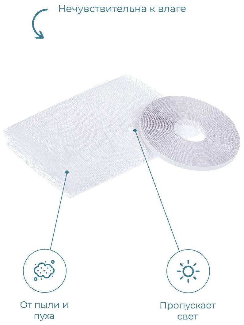 | Дополнительная информация | размер сетки 110х130 см; самоклеящаяся репейная лента 5,6 м, диаметр ячеек 2 мм |