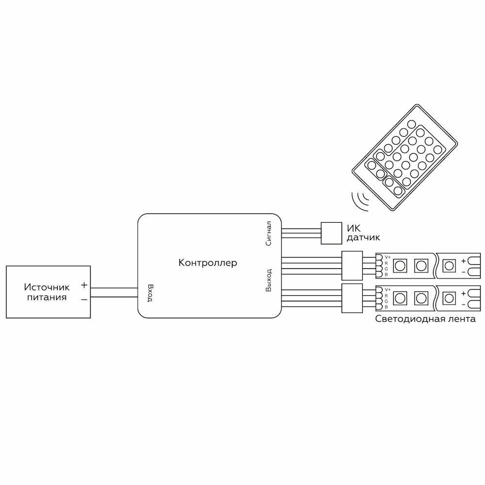 | Подробная комплектация | Контроллер, ИК пульт, батарейка LR2025, инструкция, упаковка |