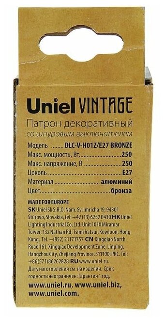 Декоративный патрон Uniel DLC-V-H01Z/E27 BRONZE, UL-00000530 15931782