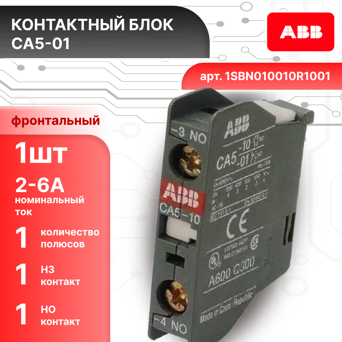 Блок контактный ABB CA5-01 1SBN010010R1001 1Н3 фронтальный для A9..A110 интересное: