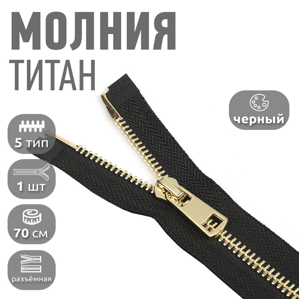 Молния разъемная MaxZipper мет. Титан №5 золото 70см цв. F322 черный уп.1 шт