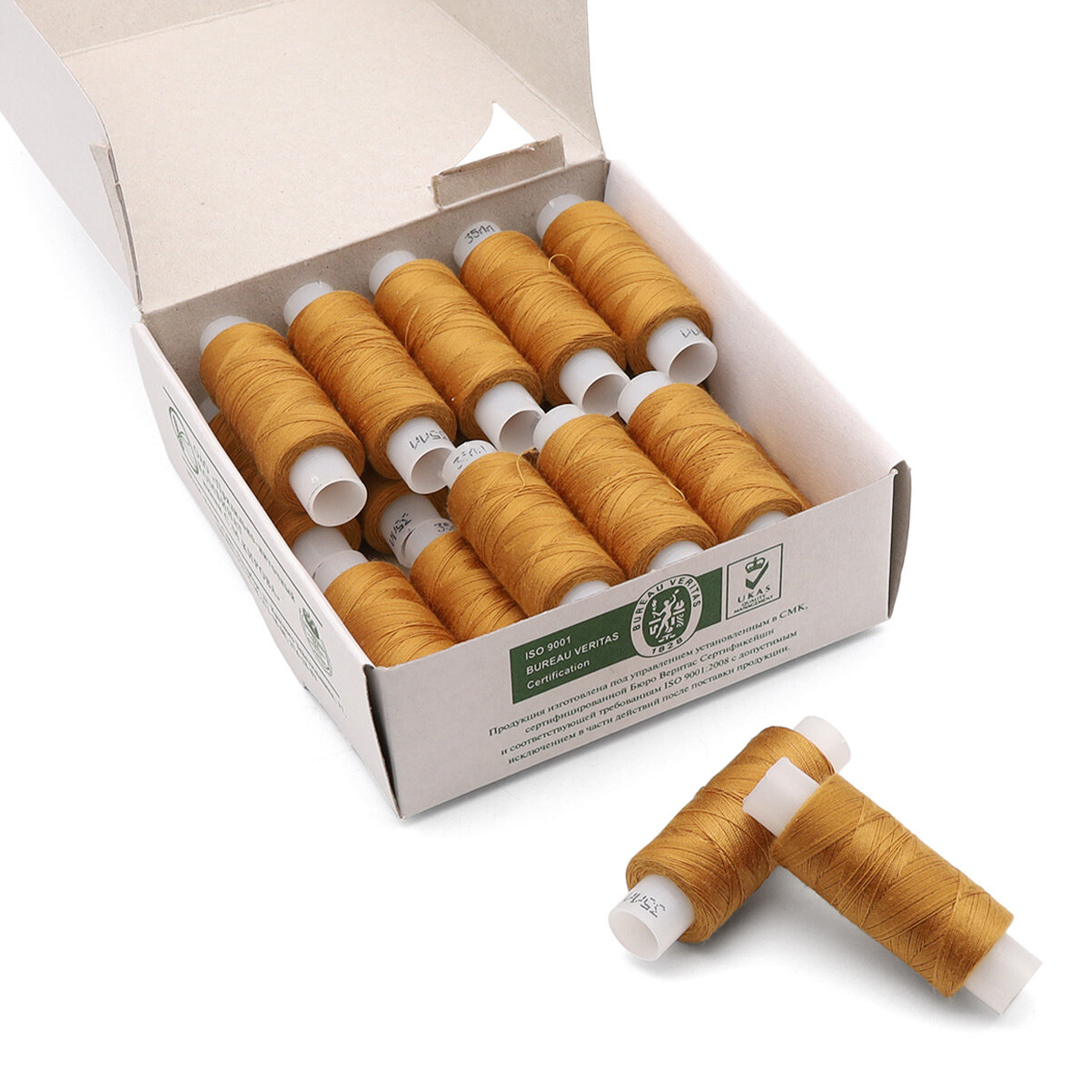 Купить Нитки швейные армированные ПНК им. Кирова, 35ЛЛ, 200 м, цветные (4304 темно-золотой), 20 шт