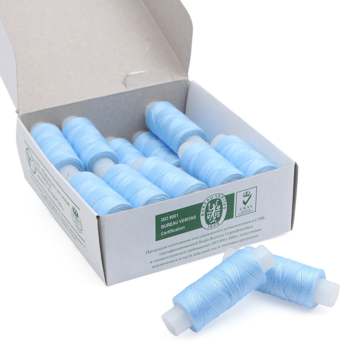 Швейные нитки ПНК им. Кирова армированные, 45ЛЛ, 20 катушек по 200 м, цвет 2505, голубой (2.45ЛЛ.200.2505)