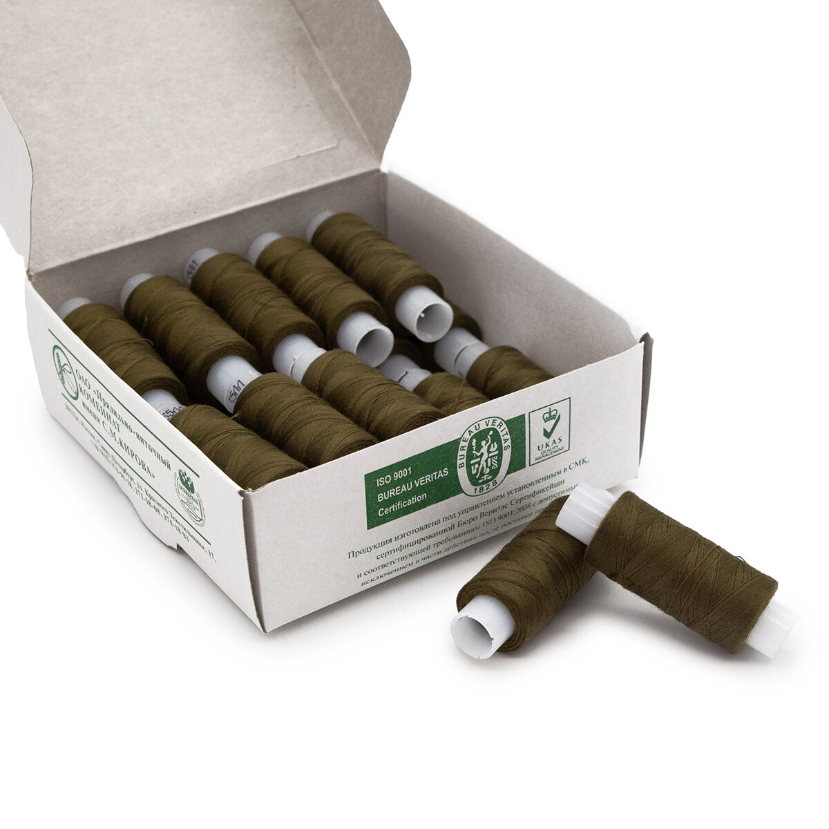 Нитки швейные армированные ПНК им. Кирова, 200 м, цветные (4206 хаки), 20 шт