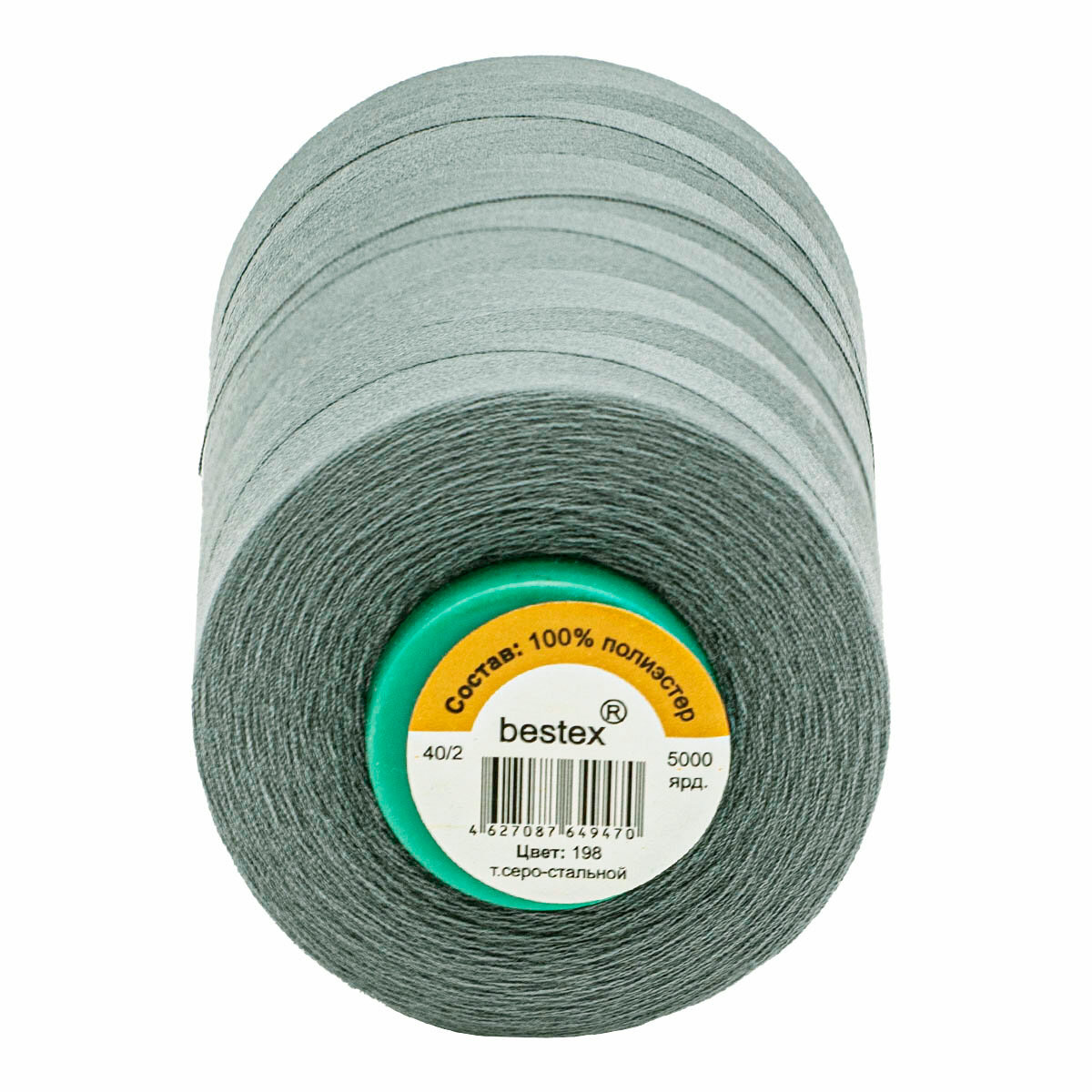 Купить Нитки промышленные Bestex 40/2, универсальные, 5000 ярдов (198 тёмный серо-стальной)