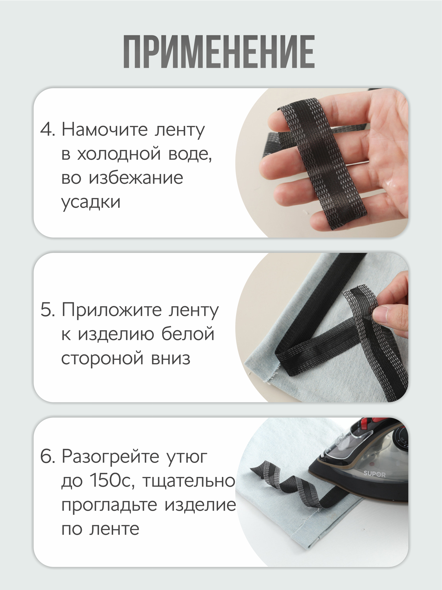 | Назначение | отделка краев, подгибка края, укрепление нижних краев брюк |
